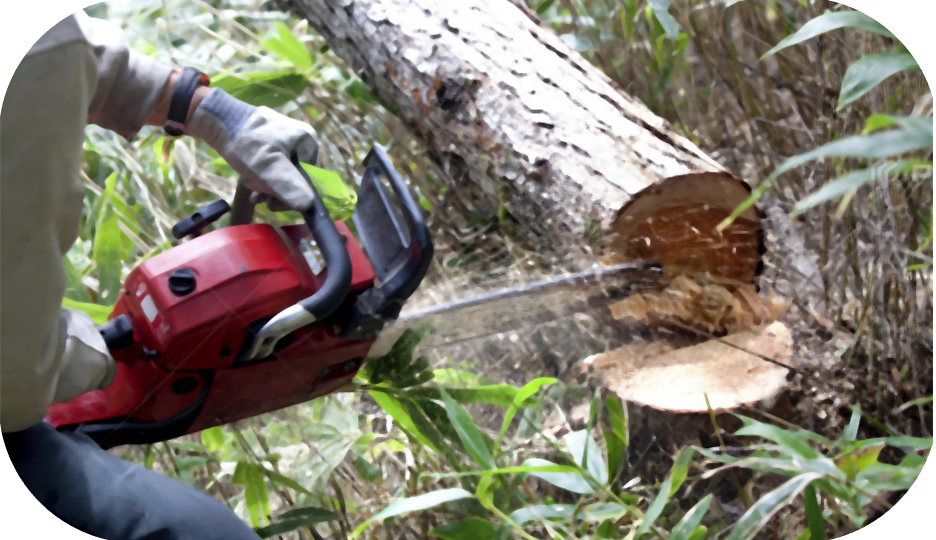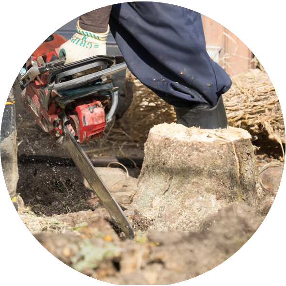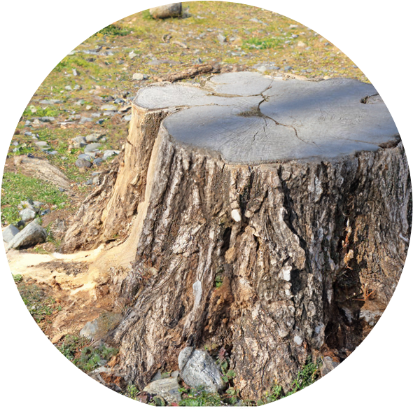 樹木を途中または根元からそのまま⼀本、切断します。伐採した後は切り株が残ります。