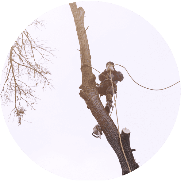樹伐採センターではクレーンやレッカーが侵入できない場所に生えている高木や倒木でも、特殊伐採可能です。クレーンやレッカーを使わず、ロープを使って高木や巨木に登って伐採する「ロープワーク」の高い技術があるため、狭い敷地内でも安全に伐採いたします。